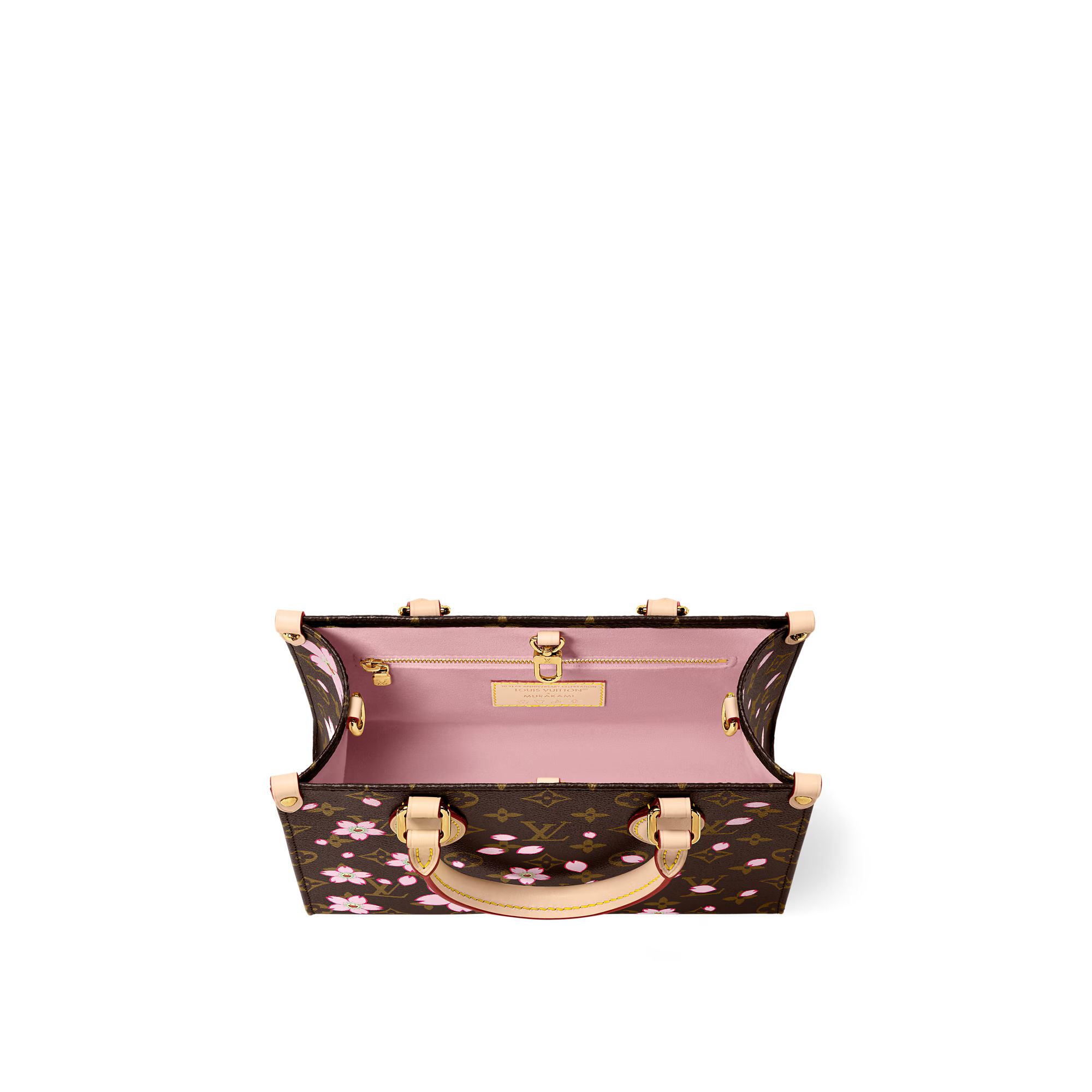プレイフルなアップデートを加えたタイムレスな「LV × TM オンザゴー PM」。「ルイ・ヴィトン × 村上隆」コレクションのエクスクルーシブなリエディションのステートメントであるチェリーブロッサム・モチーフをあしらいました。この日本人アーティストが手掛けた、再生を象徴する鮮やかなお花のモチーフをメゾンのアイコニックなモノグラム・キャンバスにプリントし、ルックを完成させるヌメ革のトリミングとゴールドカラーの金具をあしらいました。取外し可能なチェリーブロッサムのチャームを添え、今シーズンならではの華やかな仕上がりに。