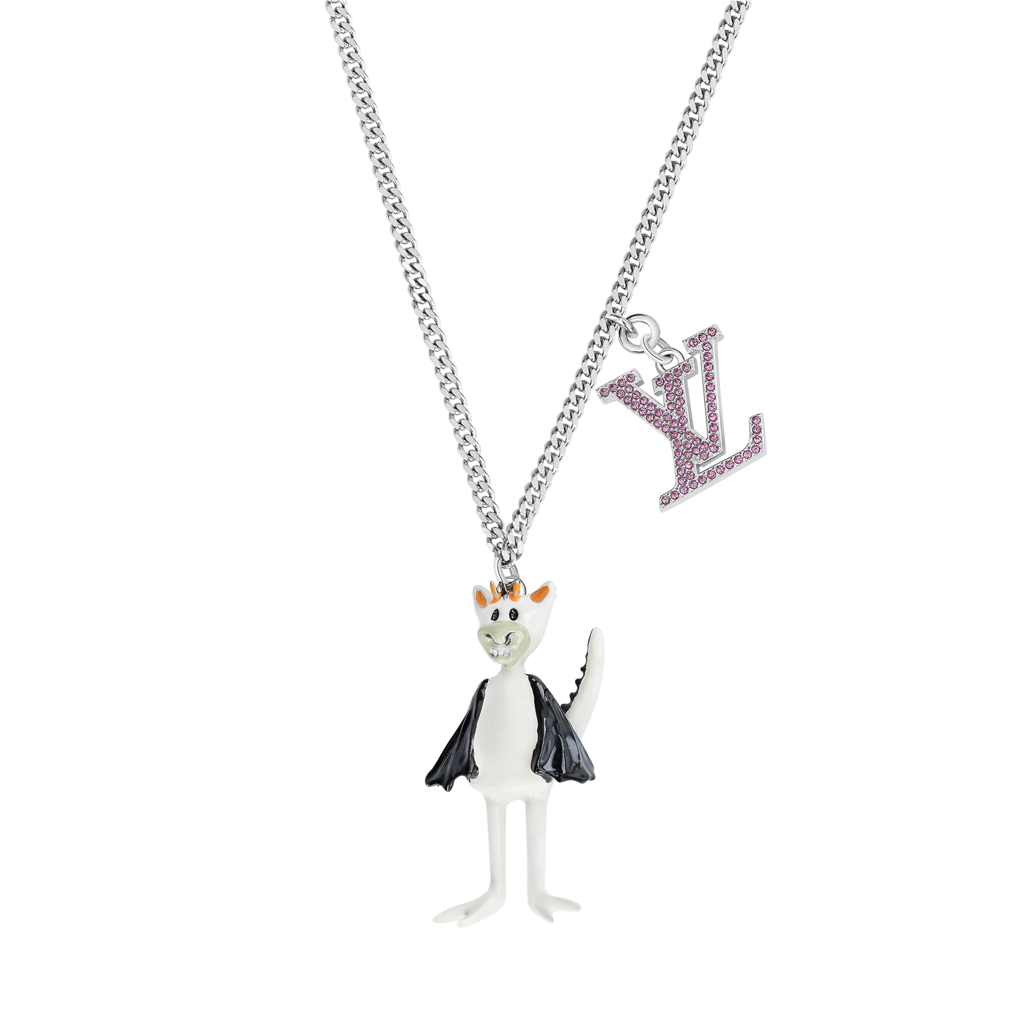 オーバーサイズのペンダントでフレッシュなエッジを際立たせた「ペンダント・LVドラゴン」。チェーンに揺れる幻想的なキャラクターは、同コレクションにおけるヴァージル・アブローの主要なインスピレーションの源である「Boyhood(少年時代)」へのノスタルジーを体現しています。エレガントなラッカーで仕上げたマスコットと、ストラスを石留めしたLV イニシャルに、メゾンの精緻なクラフツマンシップが光るアイテムです。
