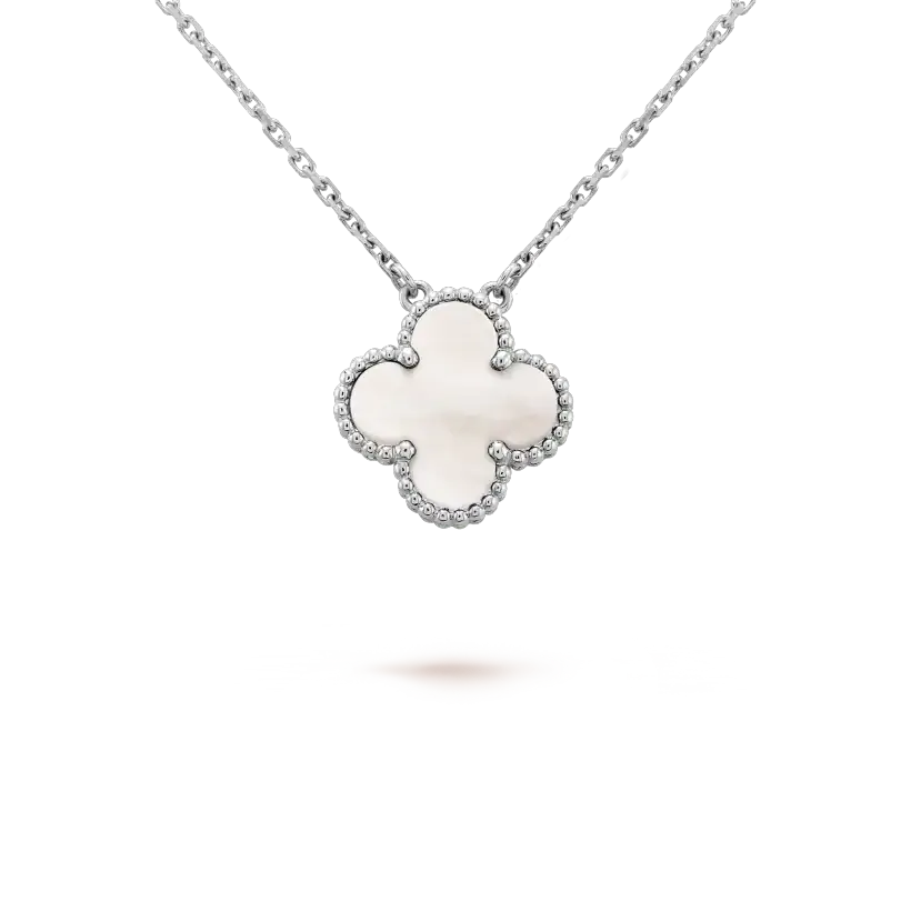 ヴィンテージアルハンブラペンダント、ホワイトゴールド、ホワイトマザーオブパール。