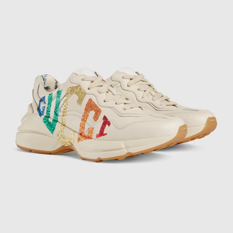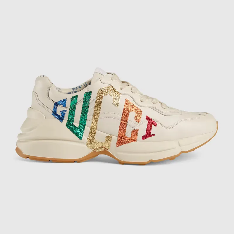 - レインボー グリッター GUCCI GAME モチーフ付き ホワイト レザー