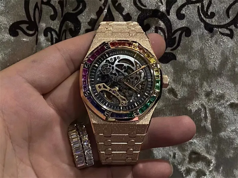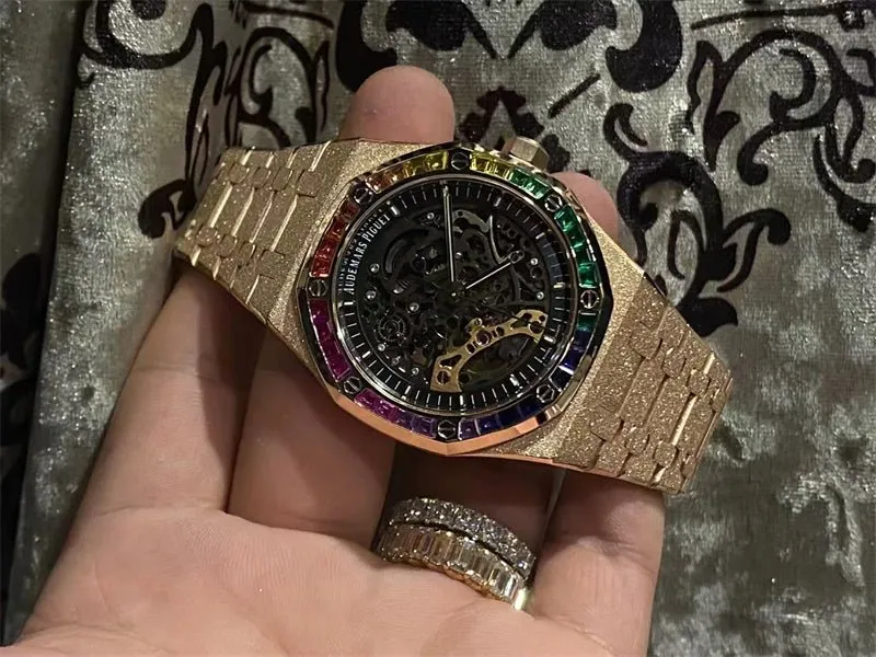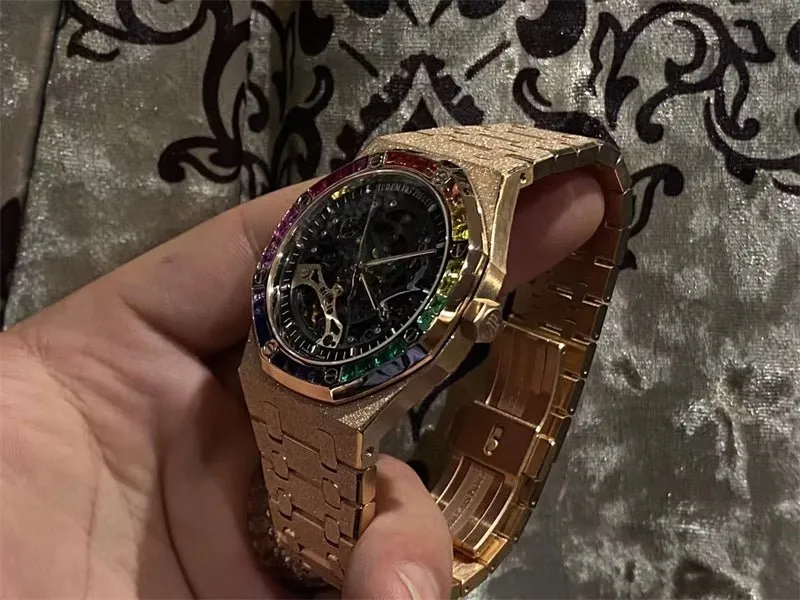ケース素材:18Kゴールド、32個の「レインボー」バゲットカット マルチカラー ストーン