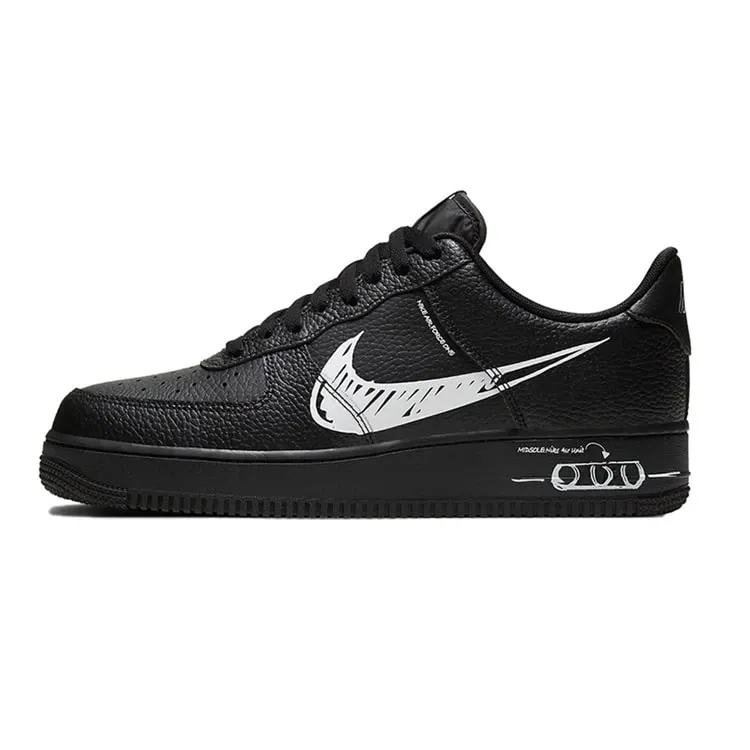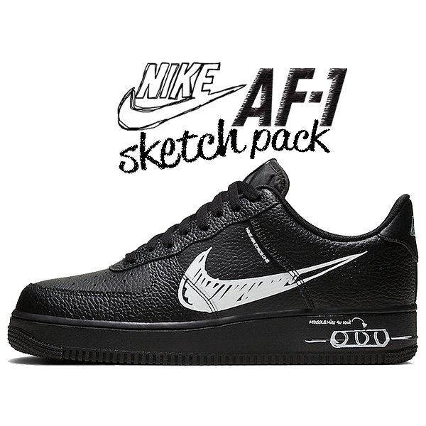 スケッチデザインのユニークなエアフォースワン!定番エアフォースワンロー。今作ではレザーアッパーにサイドスウッシュなどスケッチ、手書き風のデザインとなったユニークな一足。ディティールも注目です。