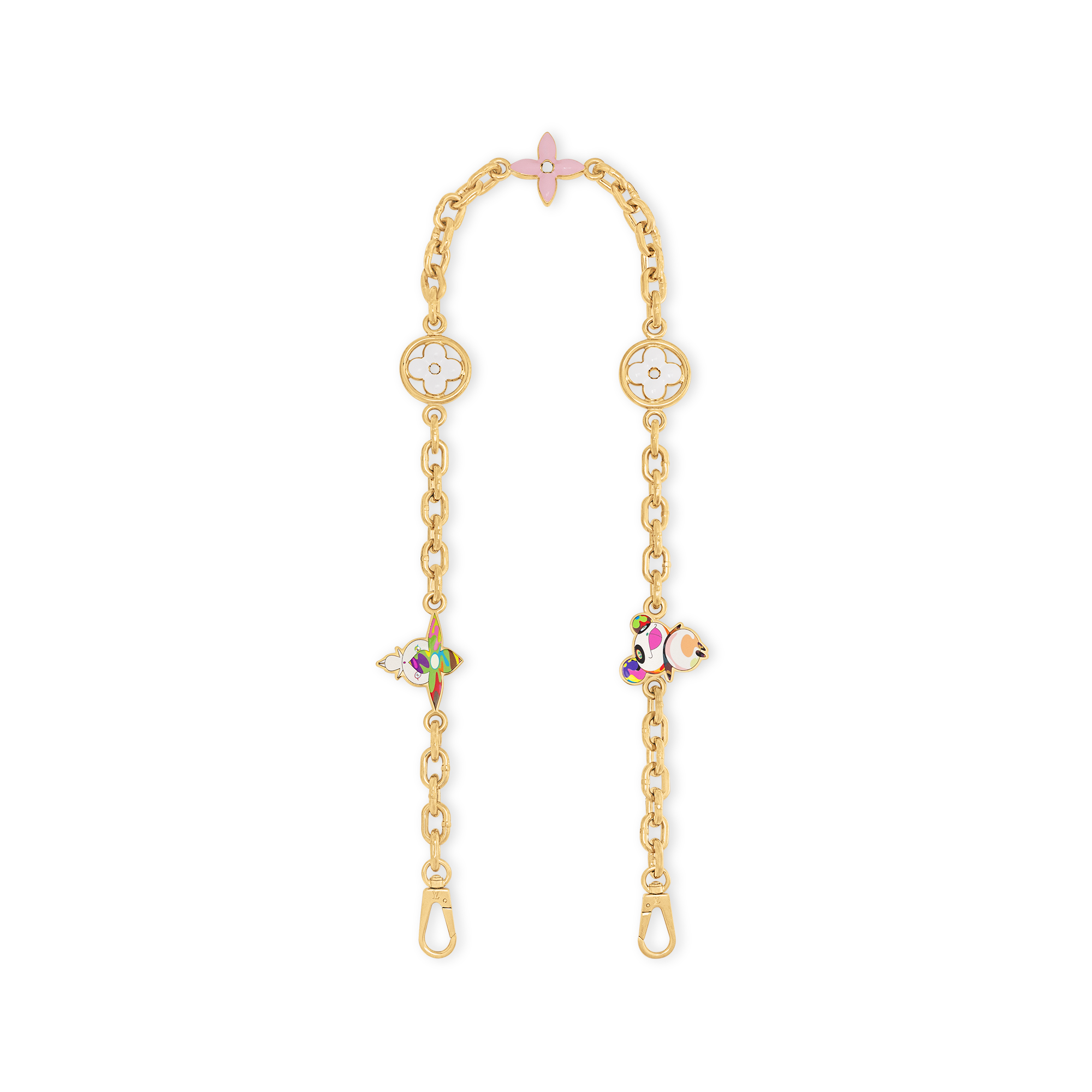 「ルイ・ヴィトン × 村上隆」コレクションの陽気なリエディションの一部である「LV × TM カプシーヌ MM 」。メゾンのアイコンバッグを今シーズンならではのシグネチャーで再構築しました。トリヨンレザーに、エンブレマティックなLV イニシャルを含むゴールドカラーのメタルパーツが丁寧にあしらわれています。取外し可能なチェーンストラップを彩るモノグラム・フラワーと、この日本人アーティストを象徴する「スーパーフラット」なスタイルで表現した遊び心溢れるパンダのキャラクターも魅力です。マルチカラーのモノグラム・モチーフがストラップとライニングにアップビートなアクセントをプラス。