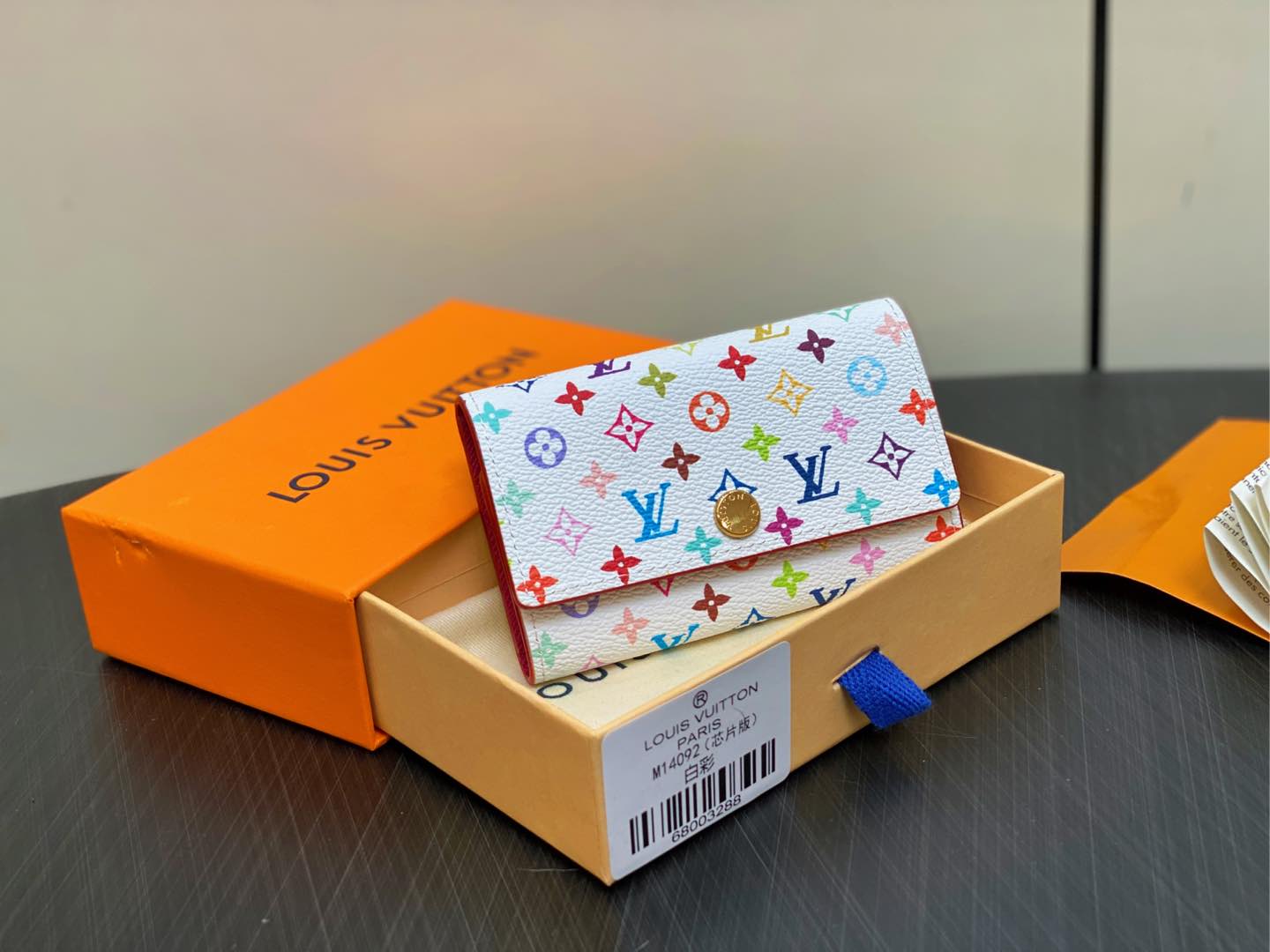 「ルイ・ヴィトン × 村上隆」コレクションのリエディションにふさわしく、この日本人アーティストのいきいきとした感性から着想を得た「LV × TM ミュルティクレ 6」。遊び心溢れるレインボーカラーのモノグラム・キャンバスで仕上げました。バッグやポケットにすっきり収まるなめらかなフォルムも魅力です。内側には最大6つの鍵を取付けられるフックを備えています。ゴールドカラーのスナップボタン開閉式。