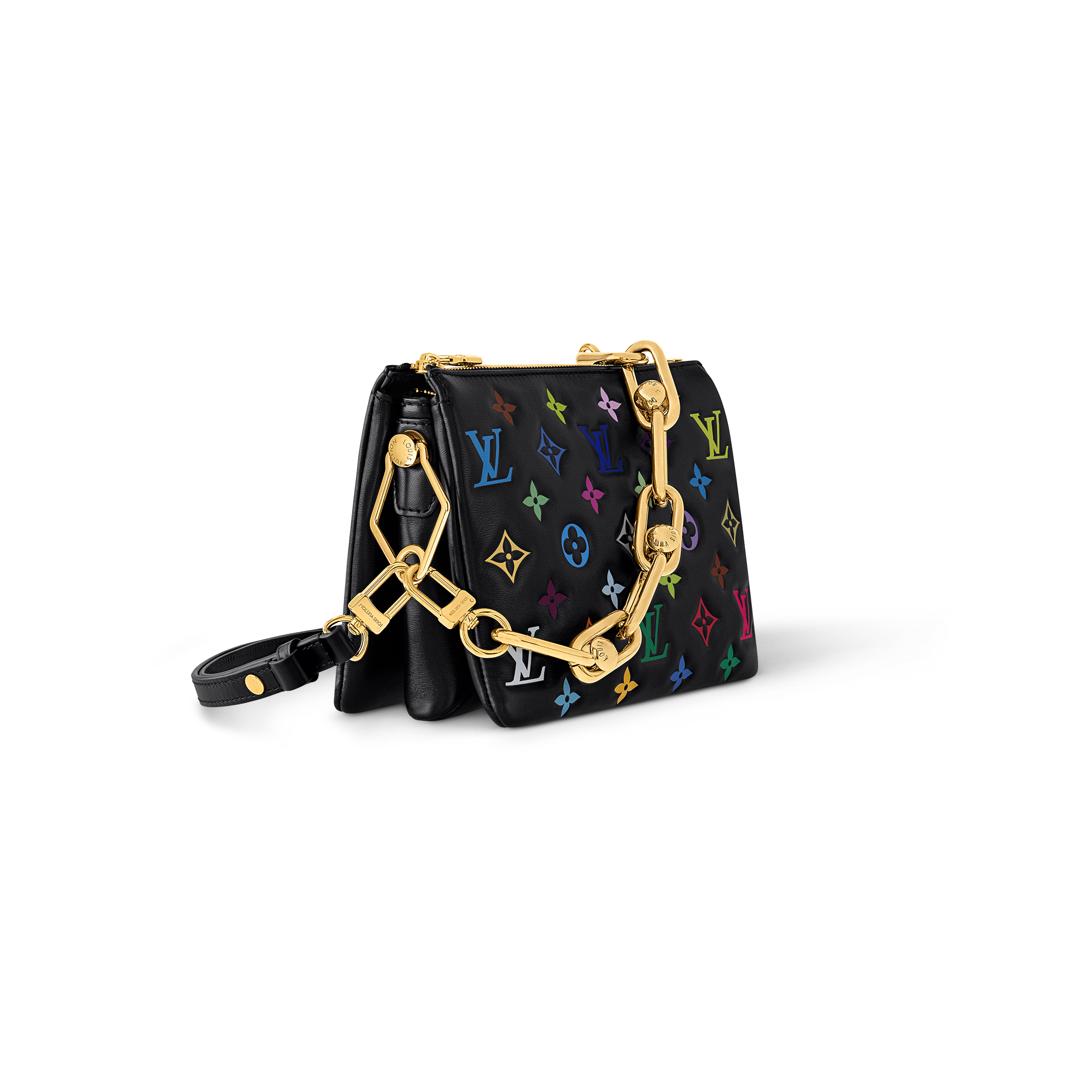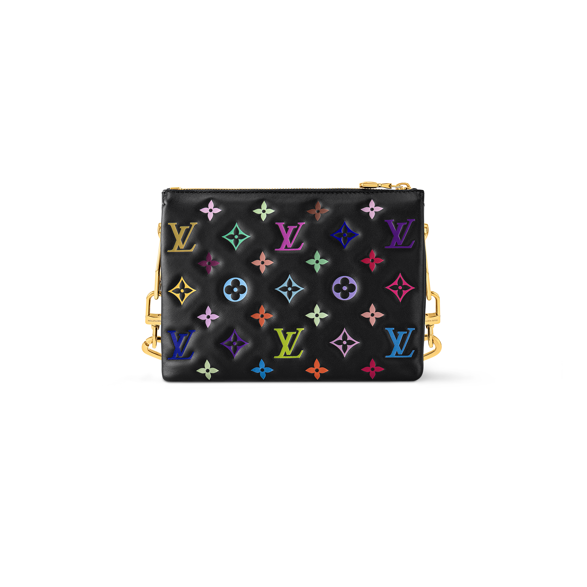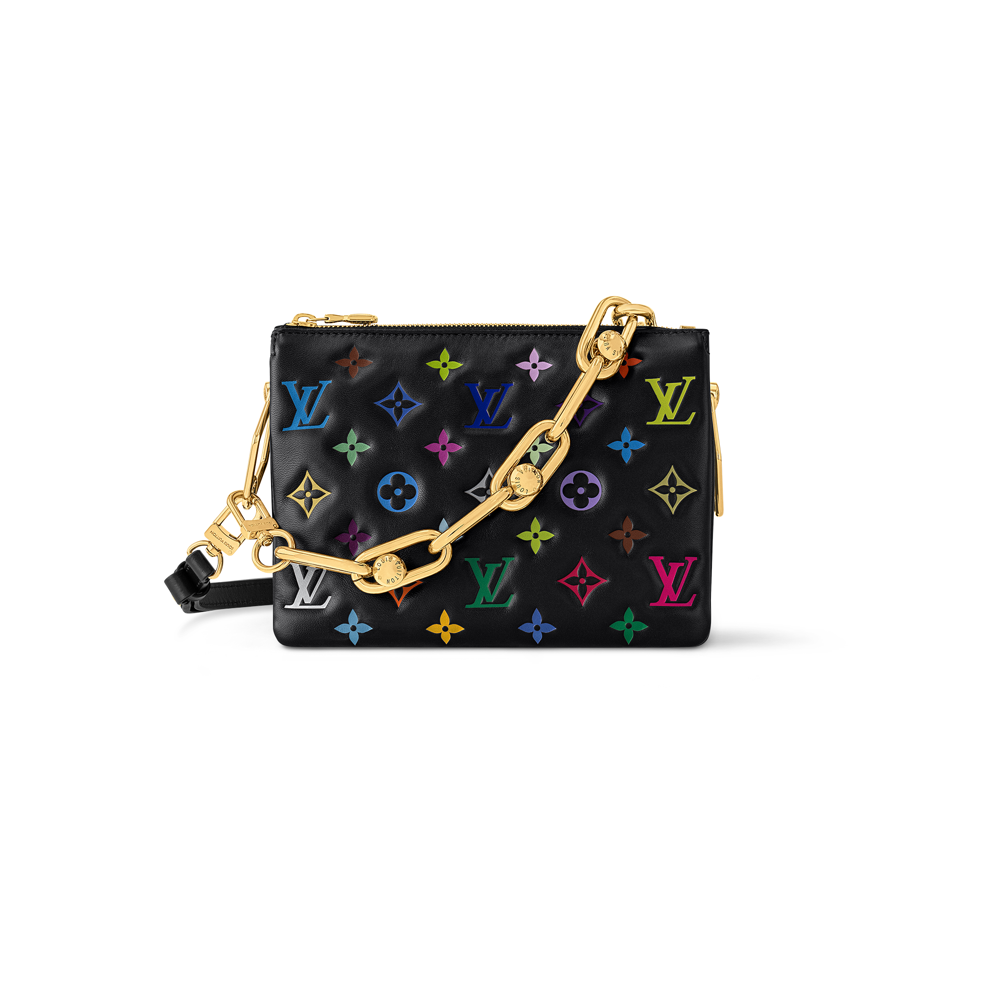 「ルイ・ヴィトン × 村上隆」コレクションのリエディションとして、日本人アーティスト 村上隆を象徴するレインボーカラーで定番バッグにプレイフルでポップな彩りを添えた「LV × TM クッサン PM」。パフ感溢れるラムレザーをなめらかなシルエットに仕上げ、マルチカラーのモノグラム・モチーフを全面にプリントしました。毎日のスタイリングに合わせてさまざまな持ち方が楽しめるチャンキーなゴールドカラーのチェーンと取外し可能なレザーストラップ付き。