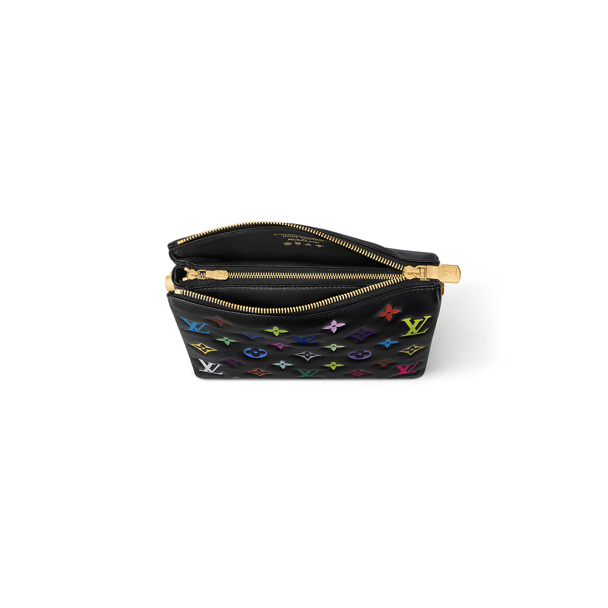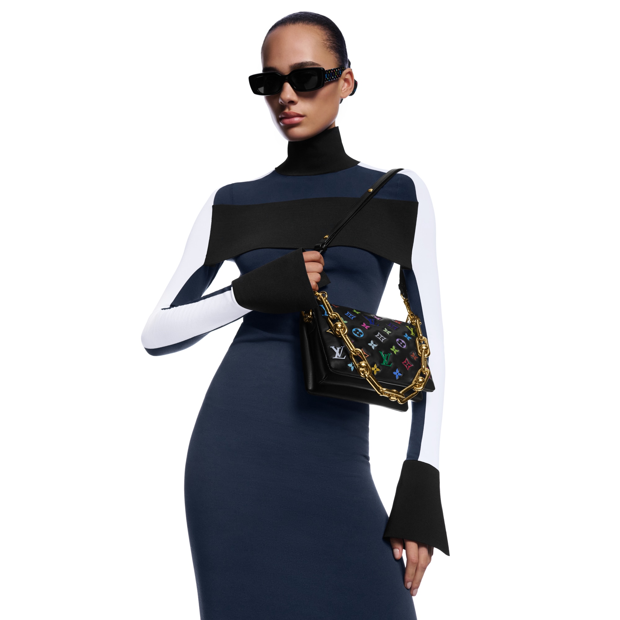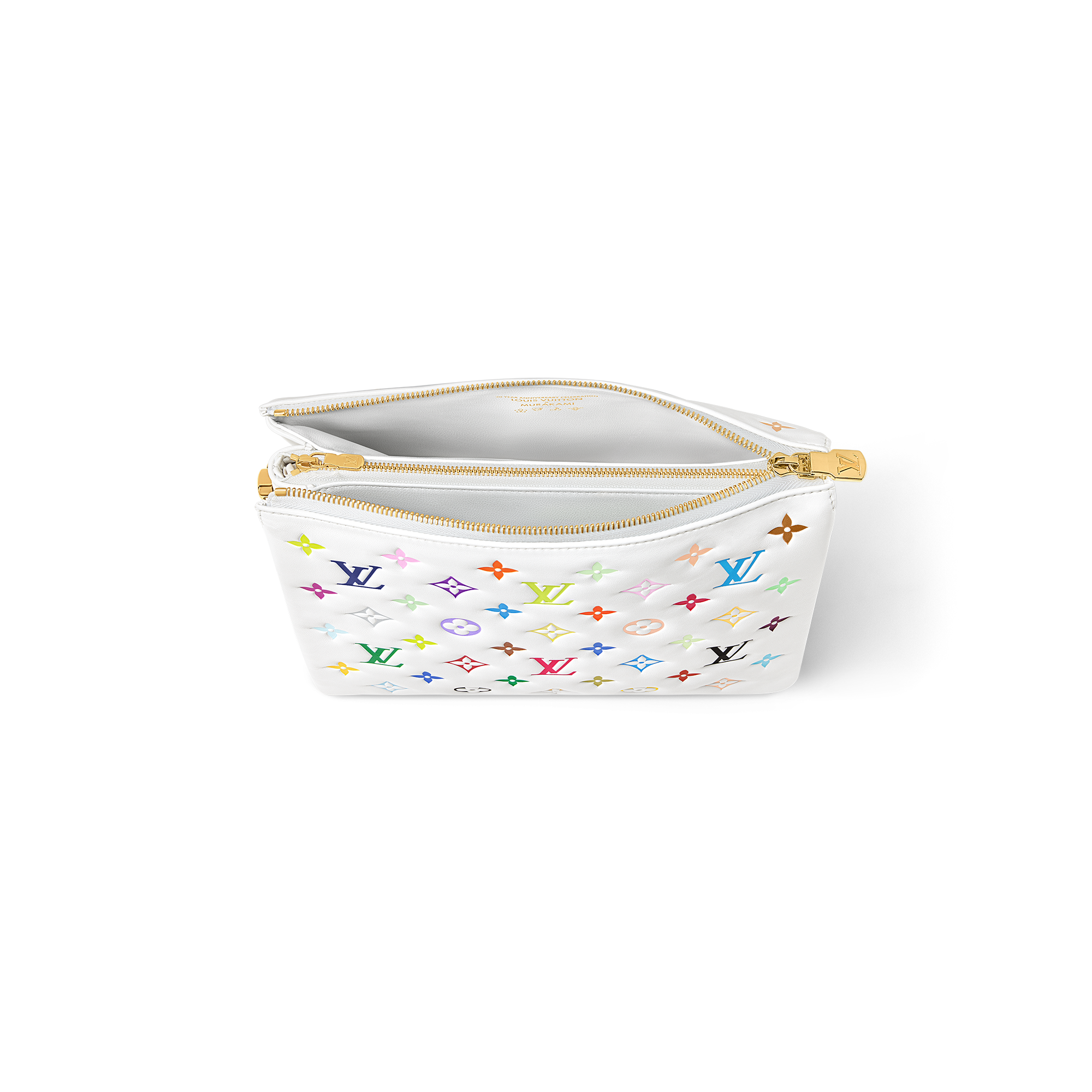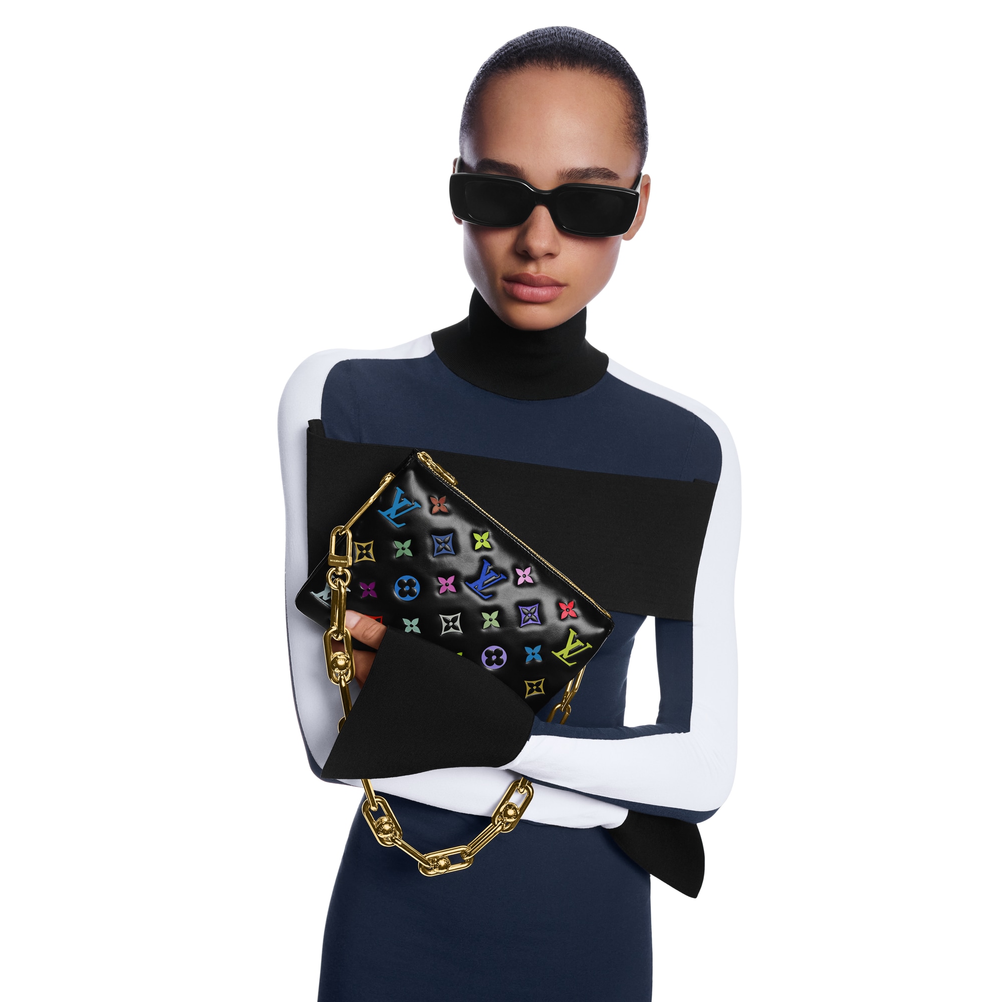 「ルイ・ヴィトン × 村上隆」コレクションのリエディションとして、日本人アーティスト 村上隆を象徴するレインボーカラーで定番バッグにプレイフルでポップな彩りを添えた「LV × TM クッサン PM」。パフ感溢れるラムレザーをなめらかなシルエットに仕上げ、マルチカラーのモノグラム・モチーフを全面にプリントしました。毎日のスタイリングに合わせてさまざまな持ち方が楽しめるチャンキーなゴールドカラーのチェーンと取外し可能なレザーストラップ付き。