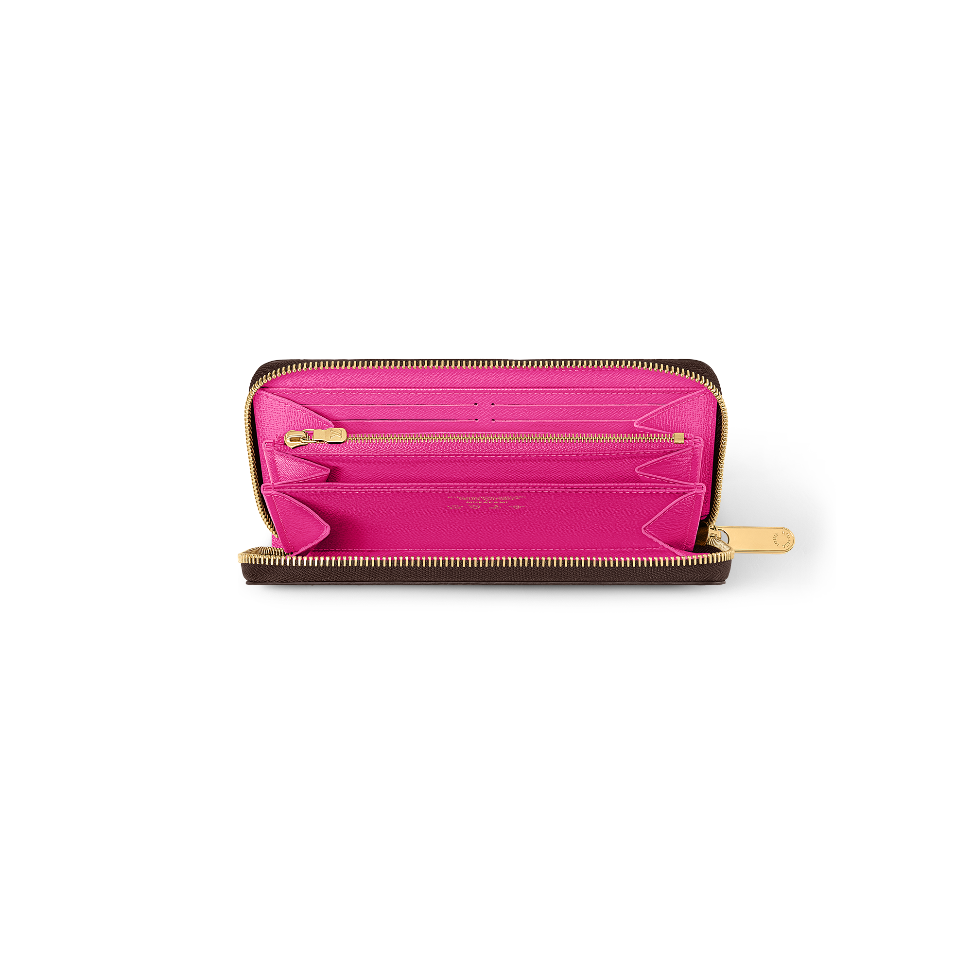 「ルイ・ヴィトン × 村上隆」コレクションのシグネチャーディテールで陽気なエスプリを効かせ、定番アイテムをアップデートした「LV × TM ジッピー・ウォレット」。クラシカルなコーティング・キャンバスにアイコニックなモノグラム・モチーフをあしらい、このアーティストならではの「スーパーフラット」なスタイルで再構築したモノグラム・フラワーを重ねました。横長のシルエットのファスナーを開くと大胆なピンクのライニングが現れる内装には、コインや紙幣、カードを収納できる複数の実用的なコンパートメントを備えています。
