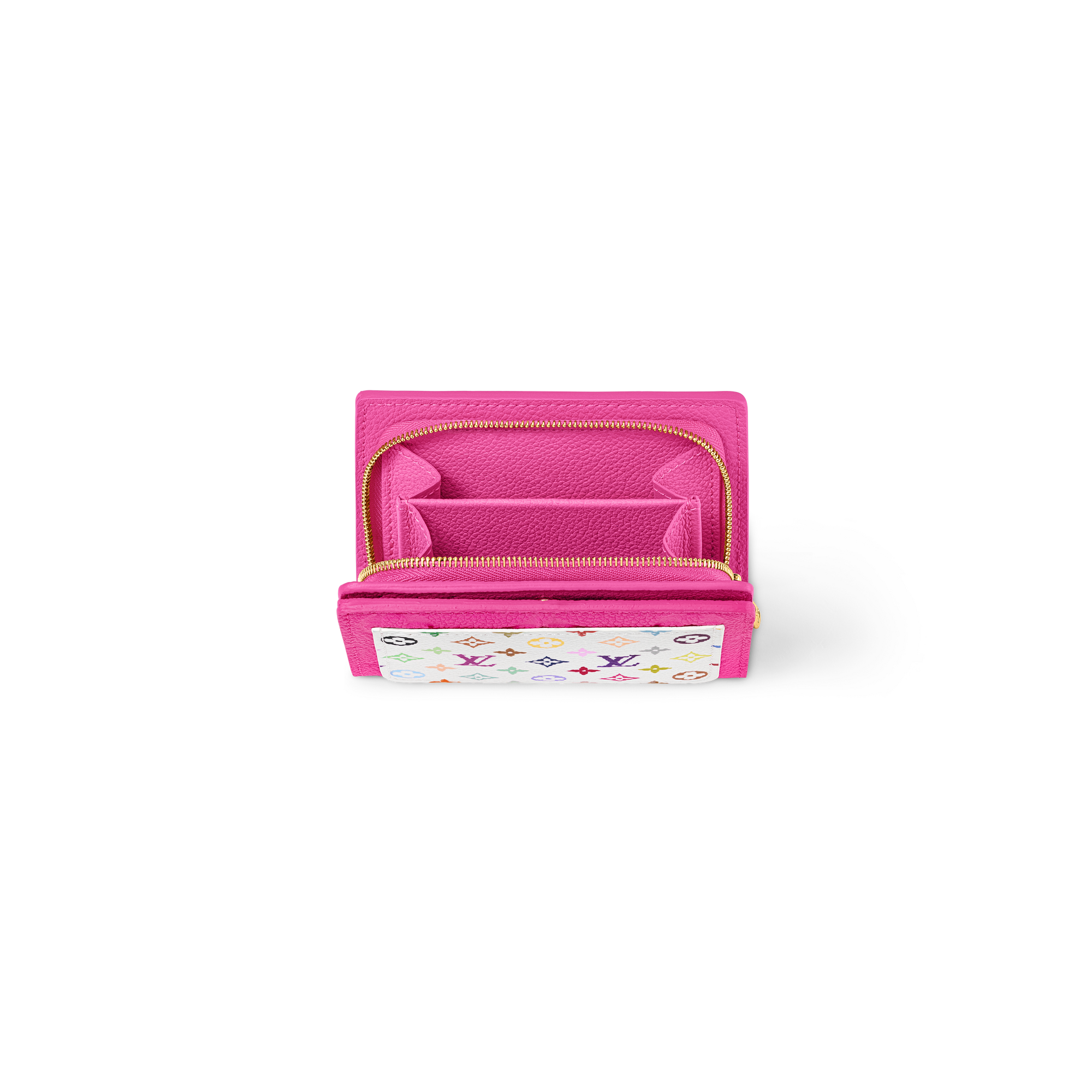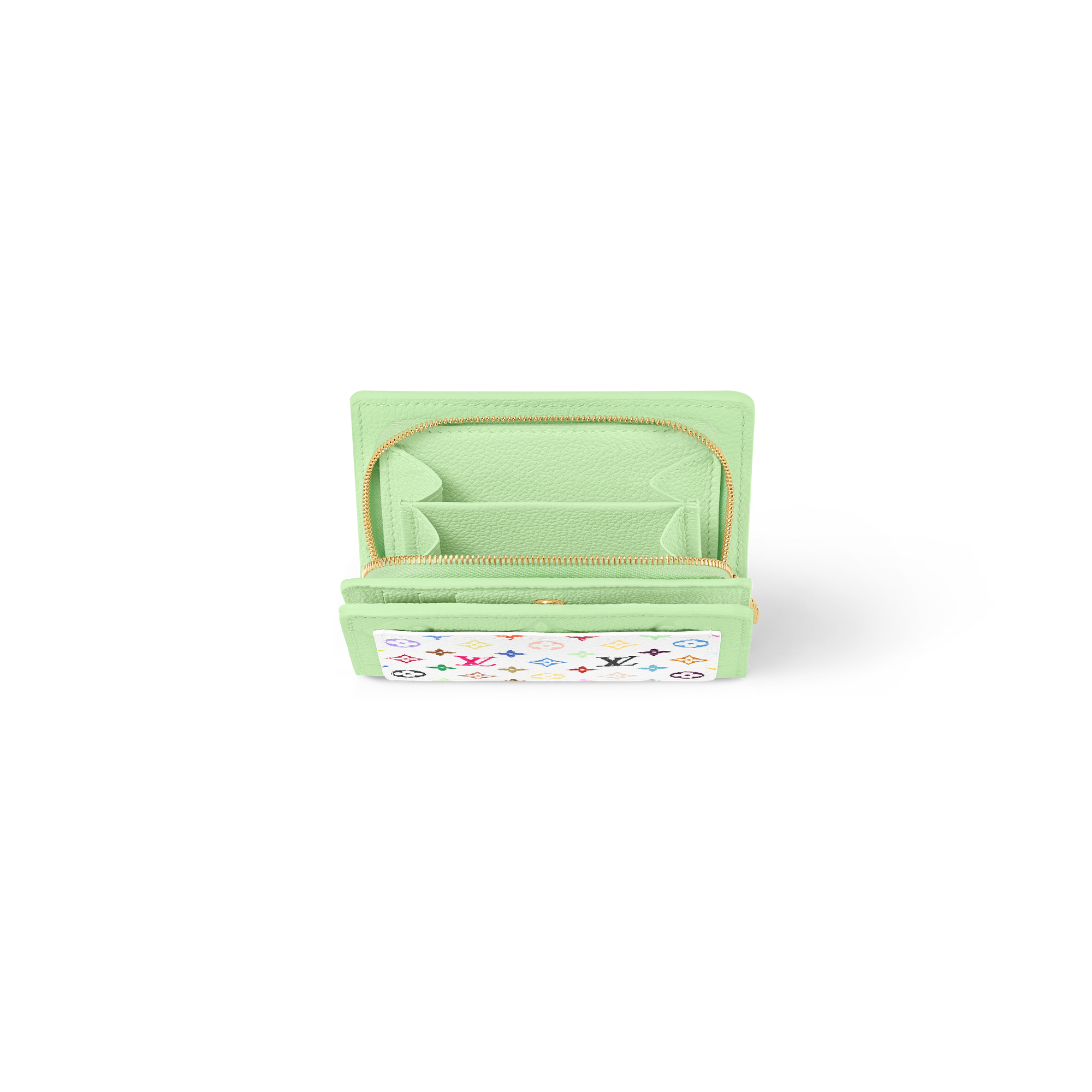 「ルイ・ヴィトン × 村上隆」コレクションならではの大胆なレインボーカラーで定番アイテムを再解釈した「LV × TM ポルトフォイユ・クレア」。グレイン(しぼ)のあるカウハイドレザーの全体にレリーフ状に施したアイコニックなモノグラム・モチーフがさりげない個性を添えます。モノグラム・マルチカラー キャンバスが際立つプレイフルな外ポケットも魅力。内側には、ファスナーで開閉するマチ付きコンパートメントとスナップボタンで開閉する紙幣やカード用のオープンポケットを備えています。