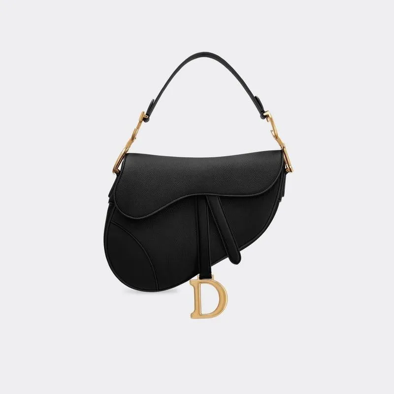 エンボス加工が施されたブラック グレインドカーフスキンの“Saddle” バッグ。