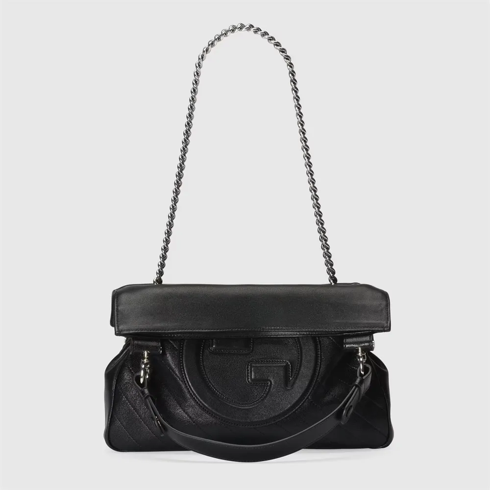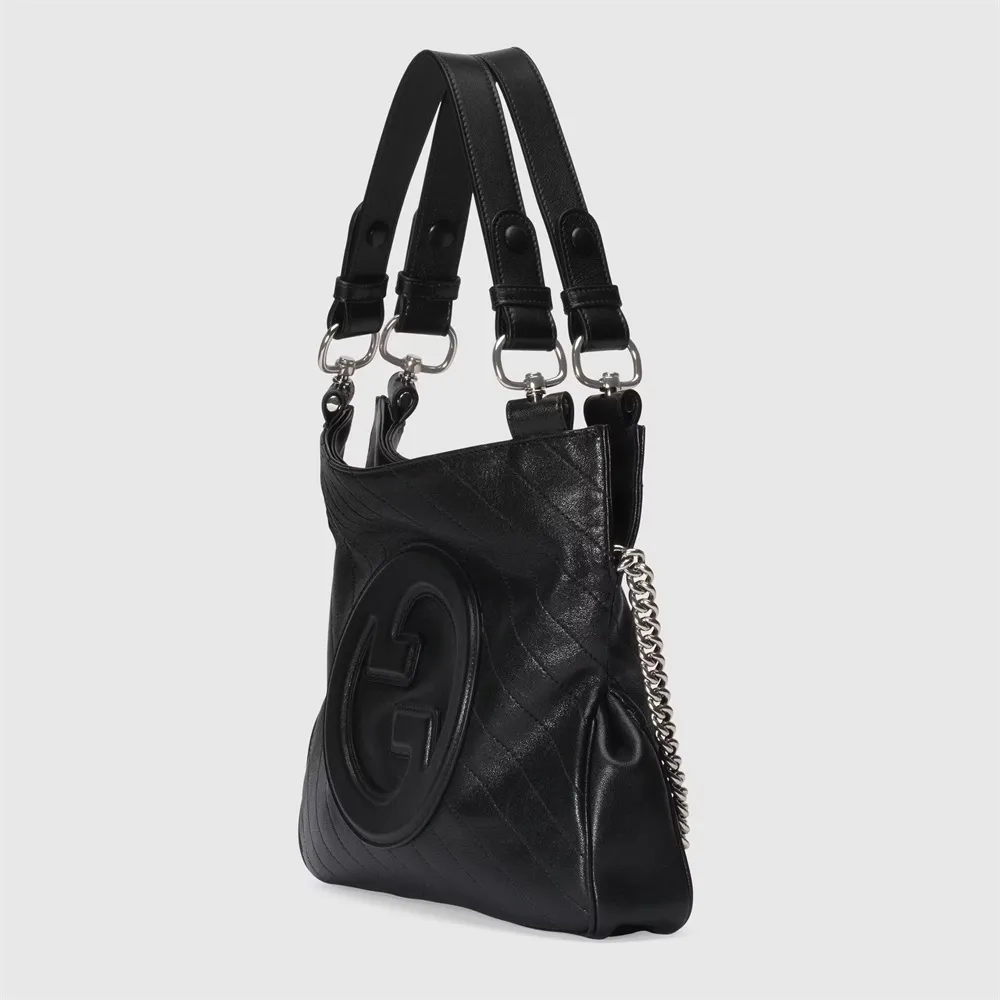 グッチのアーカイブから復刻させたラウンド インターロッキングGを特徴とする、〔グッチ ブロンディ〕ライン。トップハンドルとチェーン ショルダーストラップを備えたこの〔グッチ ブロンディ〕トートバッグは、象徴的なロゴをレザー パッチ ディテールでさりげなく表現したシグネチャー アイテムです。