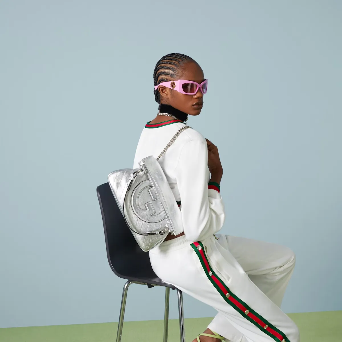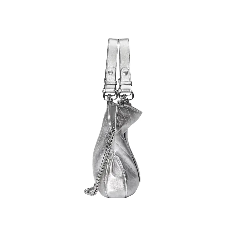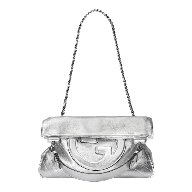 ヴィンテージのエレメントとアーカイブディテールの組み合わせは、グッチの最新コレクションに宿るグラマラスなスタイルへのオマージュ。この〔グッチ ブロンディ〕トートバッグにはトップハンドルとチェーン ショルダーストラップトップを配し、コンテンポラリーな雰囲気に仕上げました。メタリックシルバー レザーを使用し、ブランド創設者グッチオグッチのイニシャルにちなんだラウンド インターロッキングGをフロント パッチとしてあしらった新モデルです。