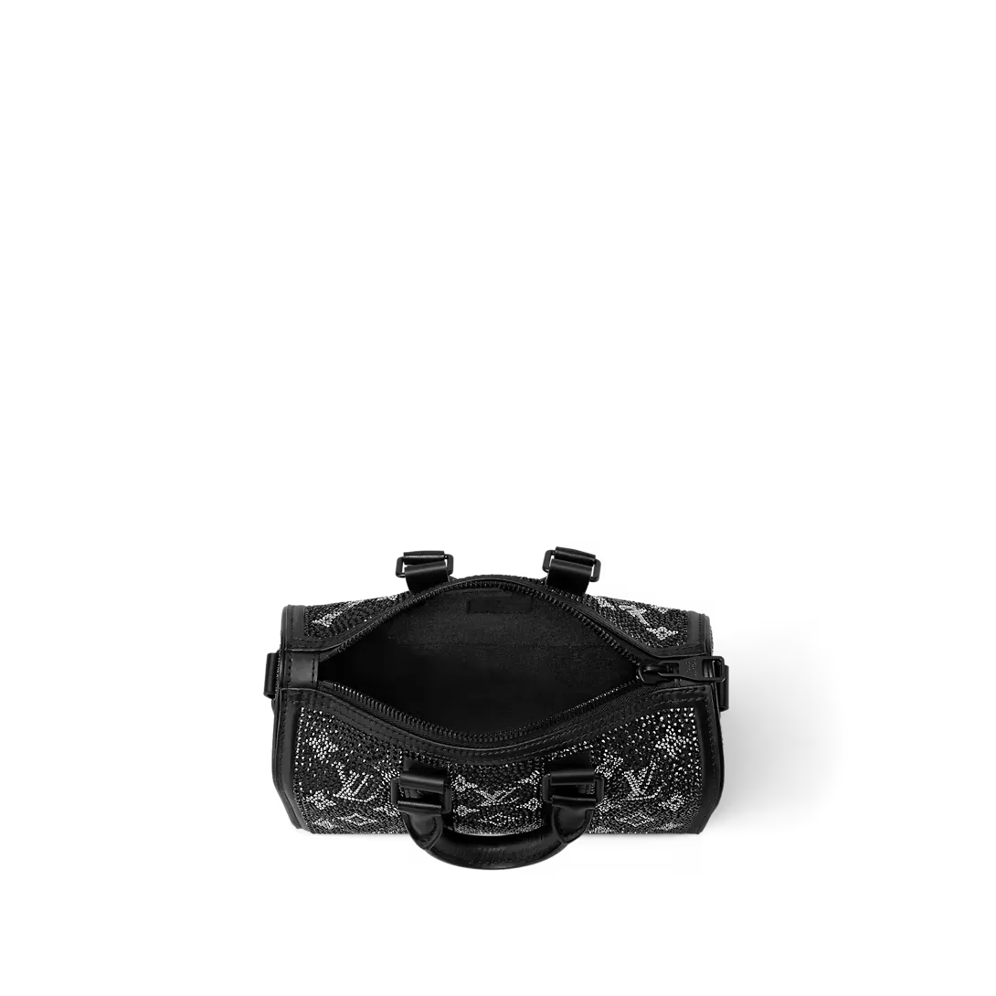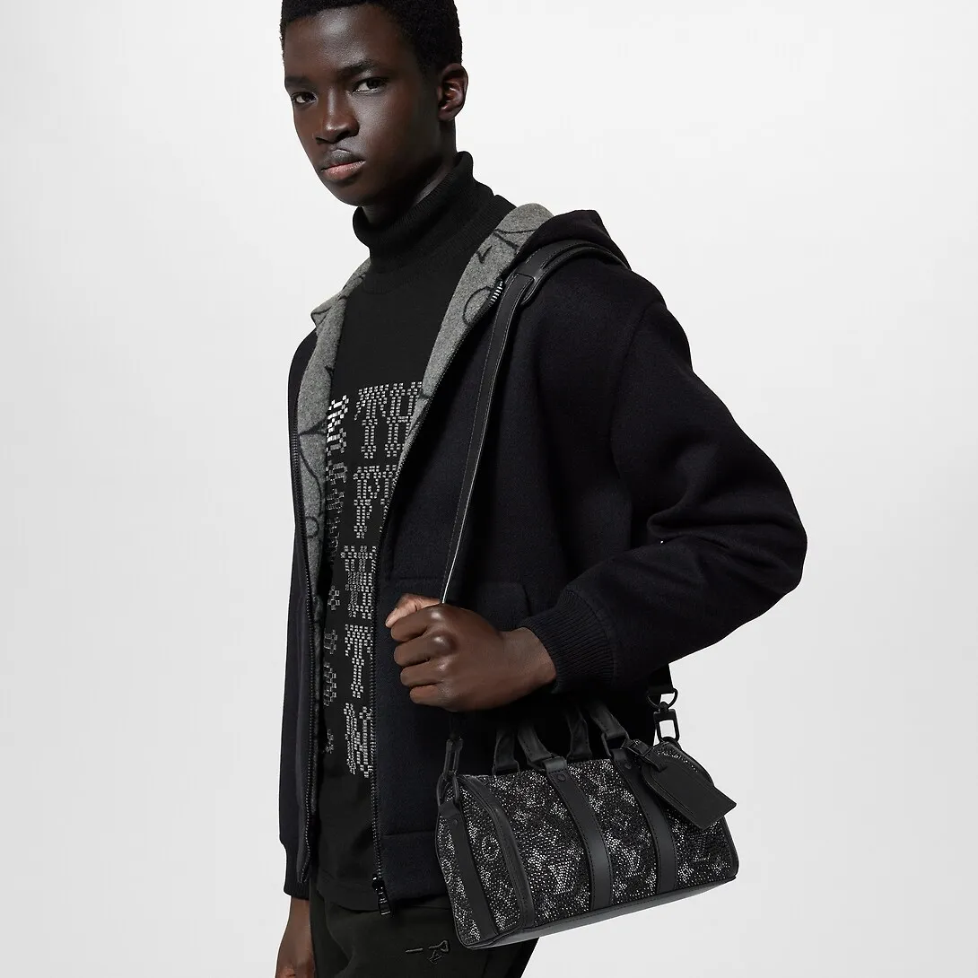 ルイヴィトンのクラフツマンシップを表現した、斬新でエクスクルーシブなキーポルバンドリエール 25。ラグジュアリーな煌めきでメゾンのアイコンバッグをアップデートしました。ブラックのカウハイドレザーに、眩い2色のスワロフスキー™のストラスで伝統的なモノグラムパターンを表現。目を引く華やかさがある、スタイリッシュで使い心地の良いバッグです。