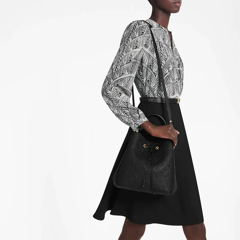 エンボス加工が美しいモノグラムアンプラント レザーで洗練された雰囲気に仕上げた「ネオノエ」。レザーのドローストリングとゴールドカラーのアイレットが存在感を放つ一品です。軽量構造とボディフレンドリーなデザインにより取回しが良く、取外し可能なトップハンドルで手持ちとしても、取外し & 調節可能なストラップでショルダーバッグやクロスボディバッグとしてもお楽しみいただけます。