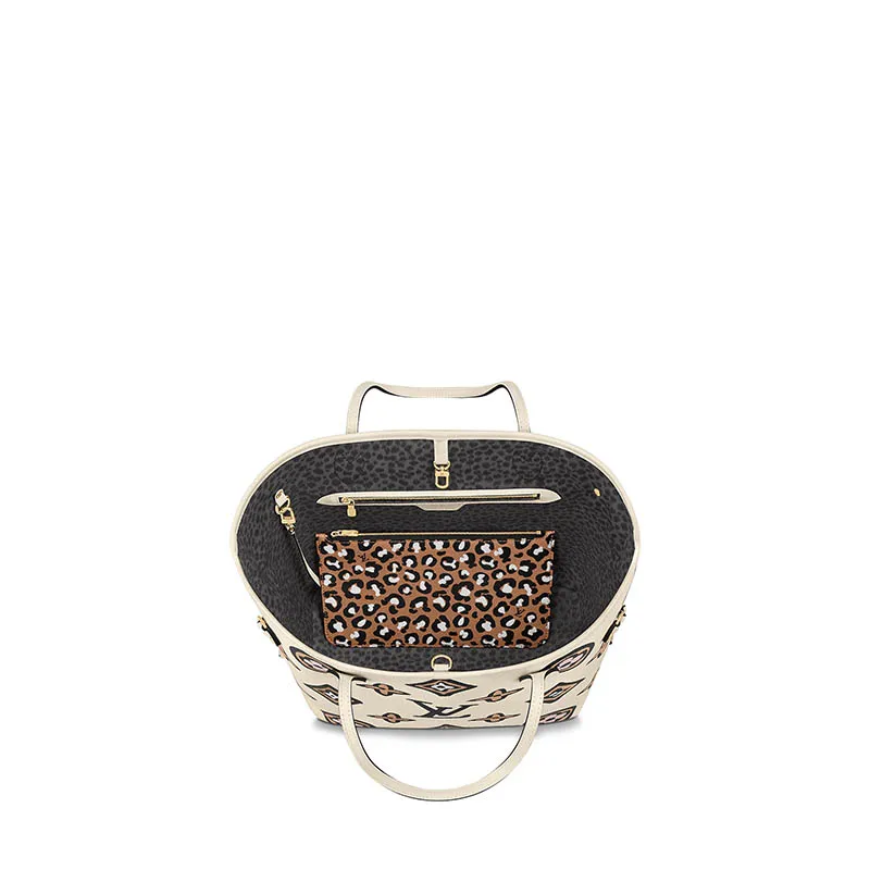 アーカイヴのデザインから着想を得たエクスクルーシブなモノグラムパターンのプリントをあしらった、今シーズンならではの「ネヴァーフル MM」。グラフィカルなハンドペイント風の大胆なルックが際立つ、「ワイルドアットハート」カプセルコレクションの1つです。ショルダーキャリーもエルボーキャリーも可能な収納力に優れたアイテムに、クラッチバッグやバッグのポケットとしてもお使いいただける取外し可能なポーチを配しました。