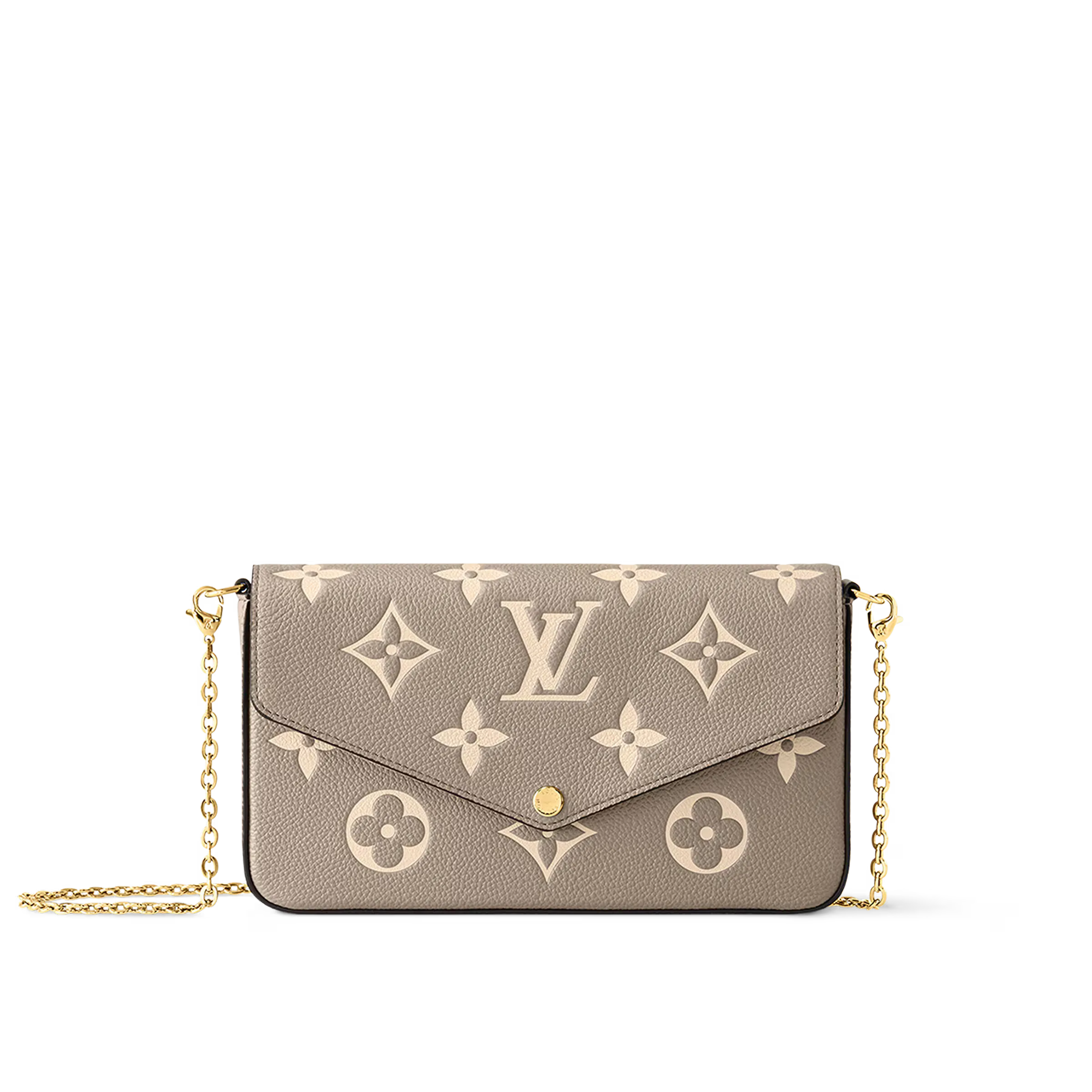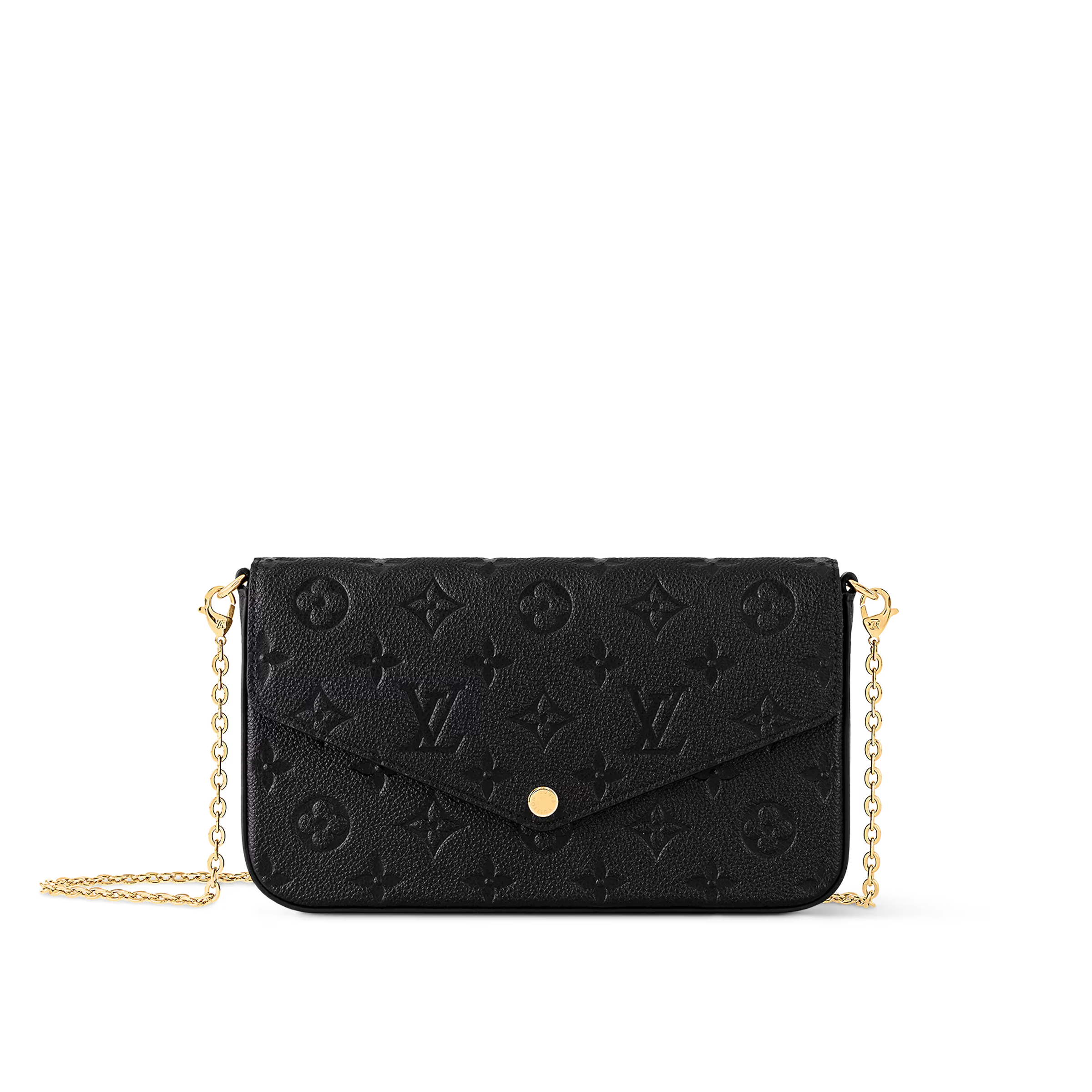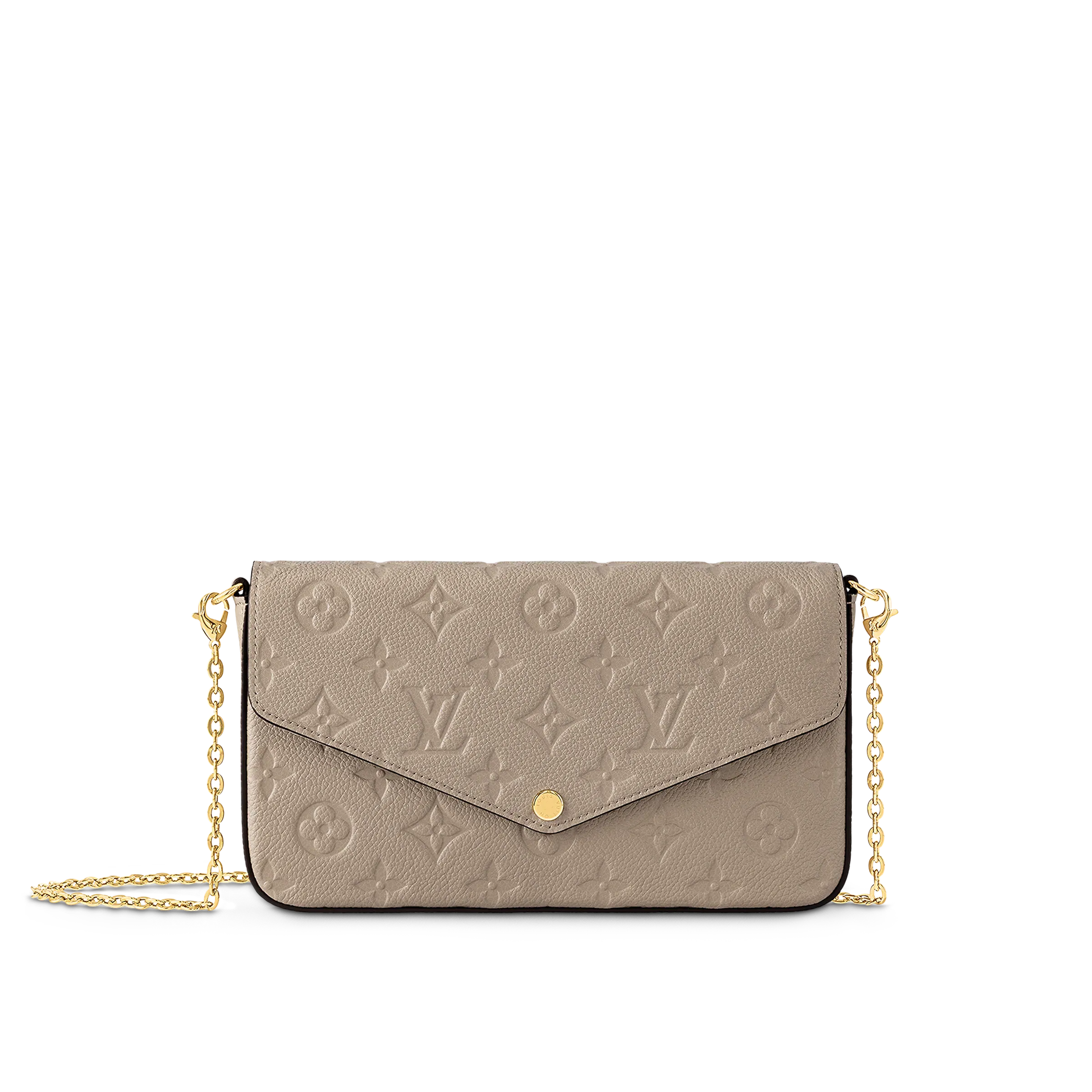 アイコニックなモノグラムパターンのエンボス加工が特徴のモノグラムアンプラント レザーのポシェットフェリシー。エンヴェロップ型のフラップの内側には、1つはファスナー付き、もう1つは複数のクレジットカードスロットを備えた取外し可能な2つのポケットが。現代のライフスタイルにぴったりのアイテムは、取外し可能なチェーン付きでさまざまな持ち方をお楽しみいただけます。