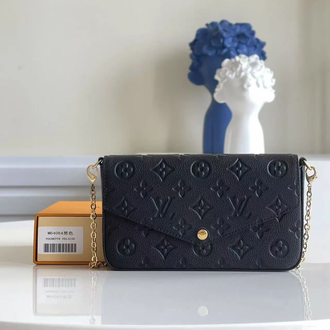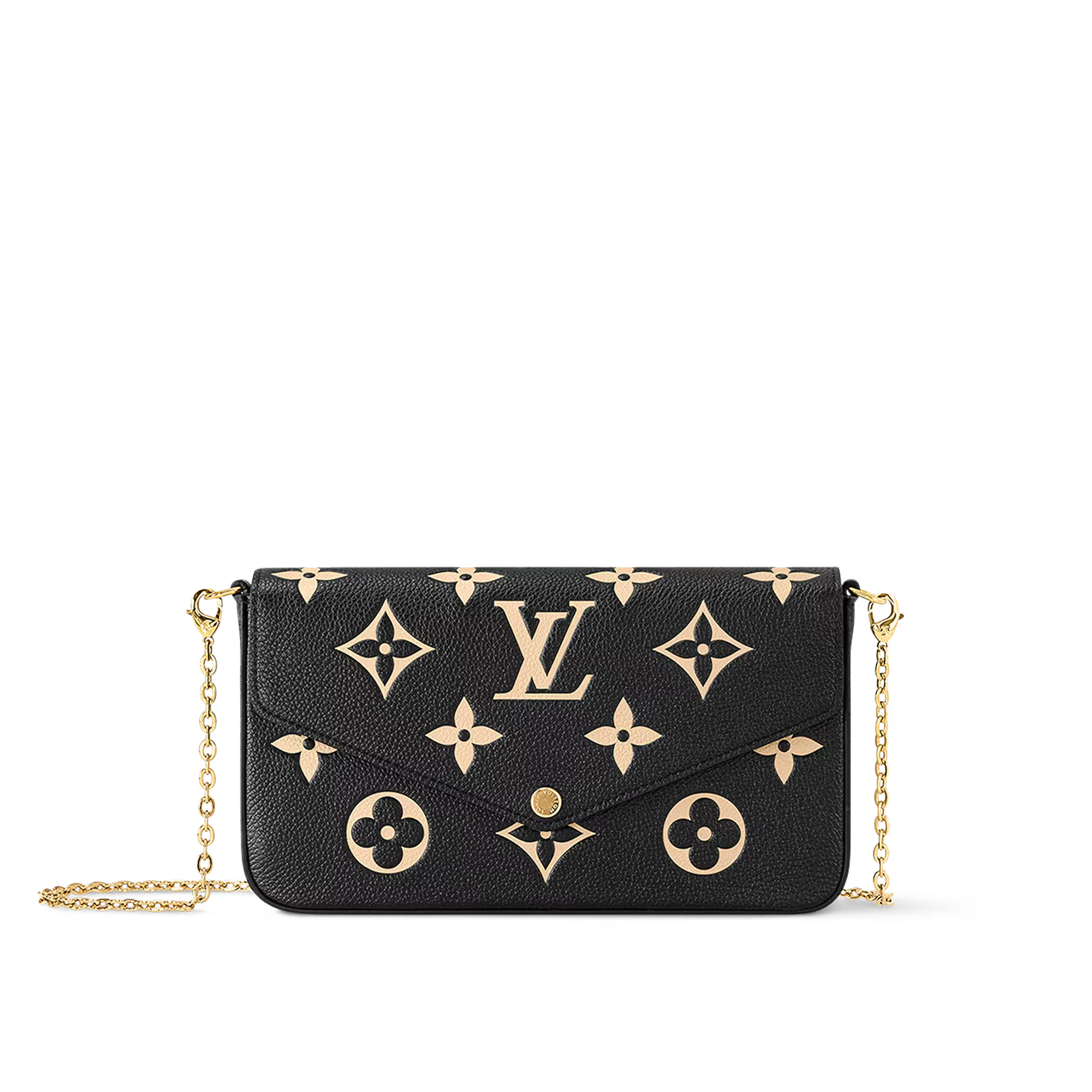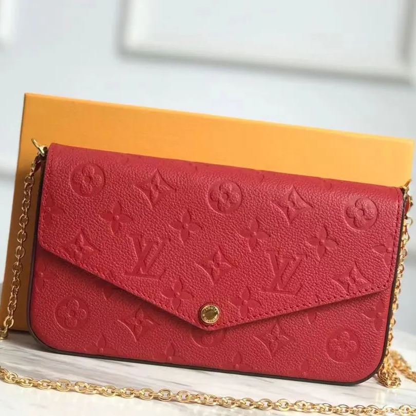 アイコニックなモノグラムパターンのエンボス加工が特徴のモノグラムアンプラント レザーのポシェットフェリシー。エンヴェロップ型のフラップの内側には、1つはファスナー付き、もう1つは複数のクレジットカードスロットを備えた取外し可能な2つのポケットが。現代のライフスタイルにぴったりのアイテムは、取外し可能なチェーン付きでさまざまな持ち方をお楽しみいただけます。