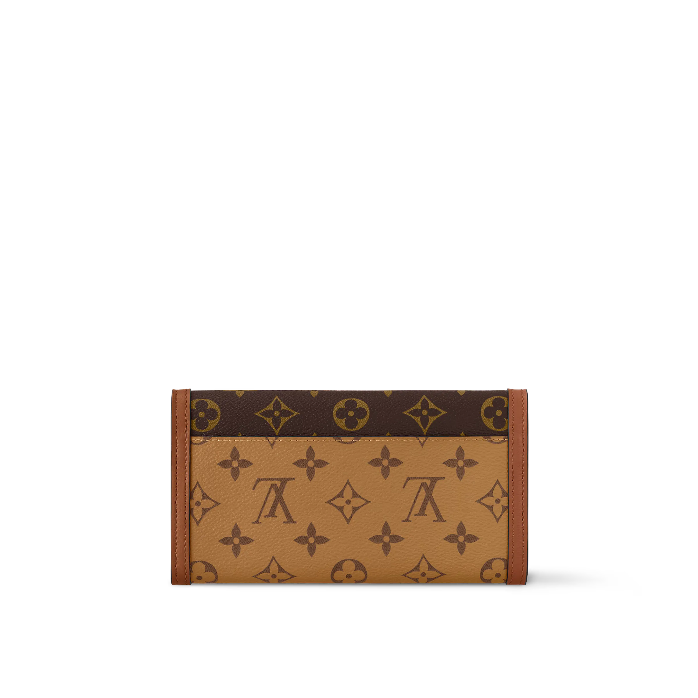 定番の財布ポルトフォイユサラをドーフィーヌラインを特徴付ける上品なシグネチャーを散りばめて再解釈したポルトフォイユサラ ドーフィーヌ。モノグラム & モノグラムリバース キャンバスを組み合わせ、カーフレザーのトリミングとヴィンテージ調のLV サークルのクラスプを施しました。モノグラムリバース キャンバスであしらった12のカードスロットとファスナー付きコインポケットを備えた機能性が、デザインを引き立てます。