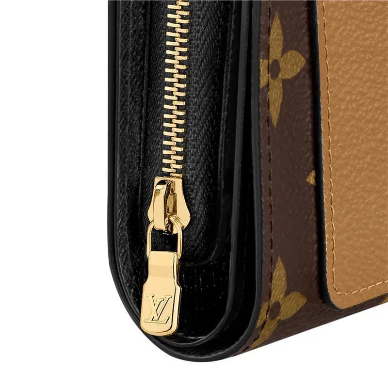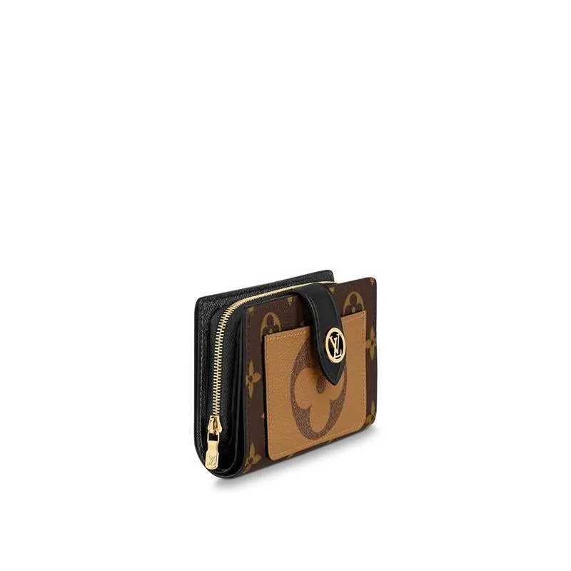 アイコニックなモノグラムキャンバスで仕立て、特徴的なモノグラムジャイアント リバース キャンバスのフロントポケットをあしらった「ポルトフォイユジュリエット」。使いやすいミディアムサイズのデザインに4つのカードスロット、紙幣用ポケット、ファスナー付きのコイン用コンパートメントを備え、機能性も抜群です。ゴールドカラーのLV サークルをあしらったスナップボタンも魅力です。