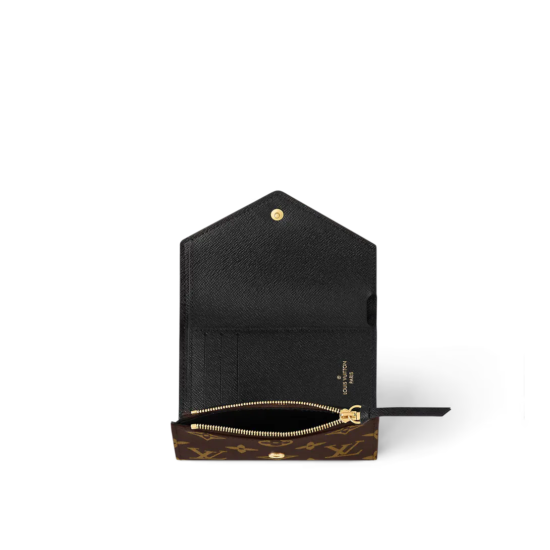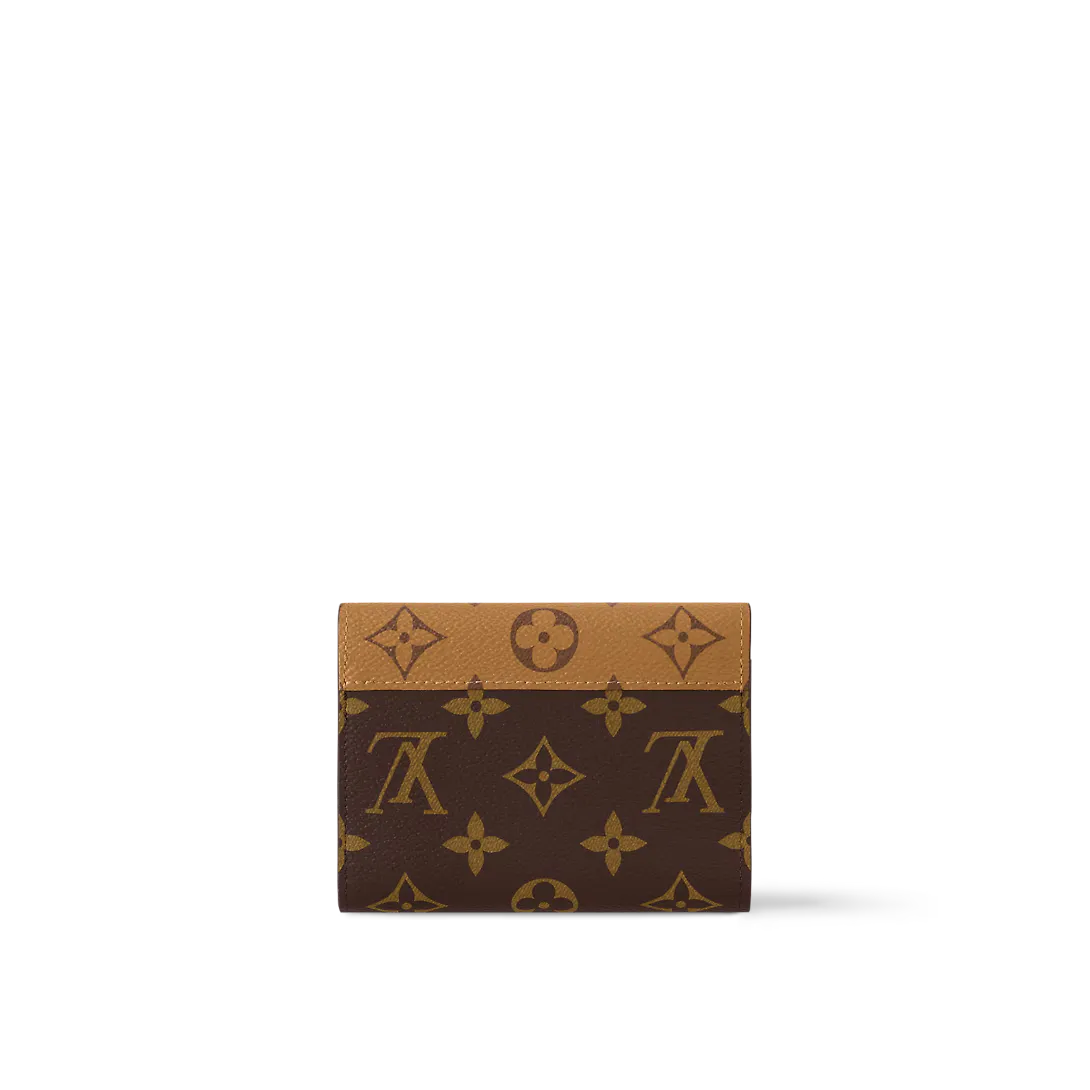 モノグラム & モノグラムリバース キャンバスを組み合わせたポルトフォイユヴィクトリーヌ。エンヴェロップ型のコンパクトなデザインに、紙幣用ポケットとクレジットカードスロット、サイドのファスナー付きコインポケットなどの実用的な機能を散りばめました。グレインレザーのライニングがフェミニンな印象を添えます。