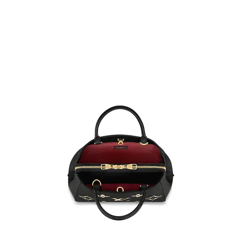 グレインレザーで仕立て、全面にミディアムサイズのモノグラムパターンをあしらった「モンテーニュ BB」。レザーにパターンをプリントしてからエンボス加工を施した一品は、目を引く構築的なデザインで、オンからオフまで幅広いシーンでお楽しみいただけます。取外し可能なストラップ付きで、ショルダーバッグとしてもご使用いただけます。