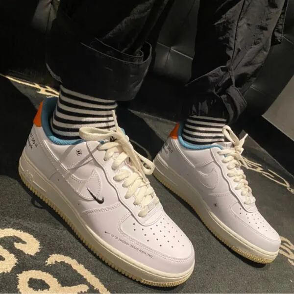 Air Force 1はNIKEの定番靴の一つで、1982年にデビューしました。Air Force 1の熱は今まで続いています。シンプルで重みのあるデザインです。エアブラシを加えて快適さを増しています。今回はクラシックなスムースレザーを使用して、かかとにOff Whiteのような文字を加えて述べました。そして革SwooshにミニSwooshを縫いしました。