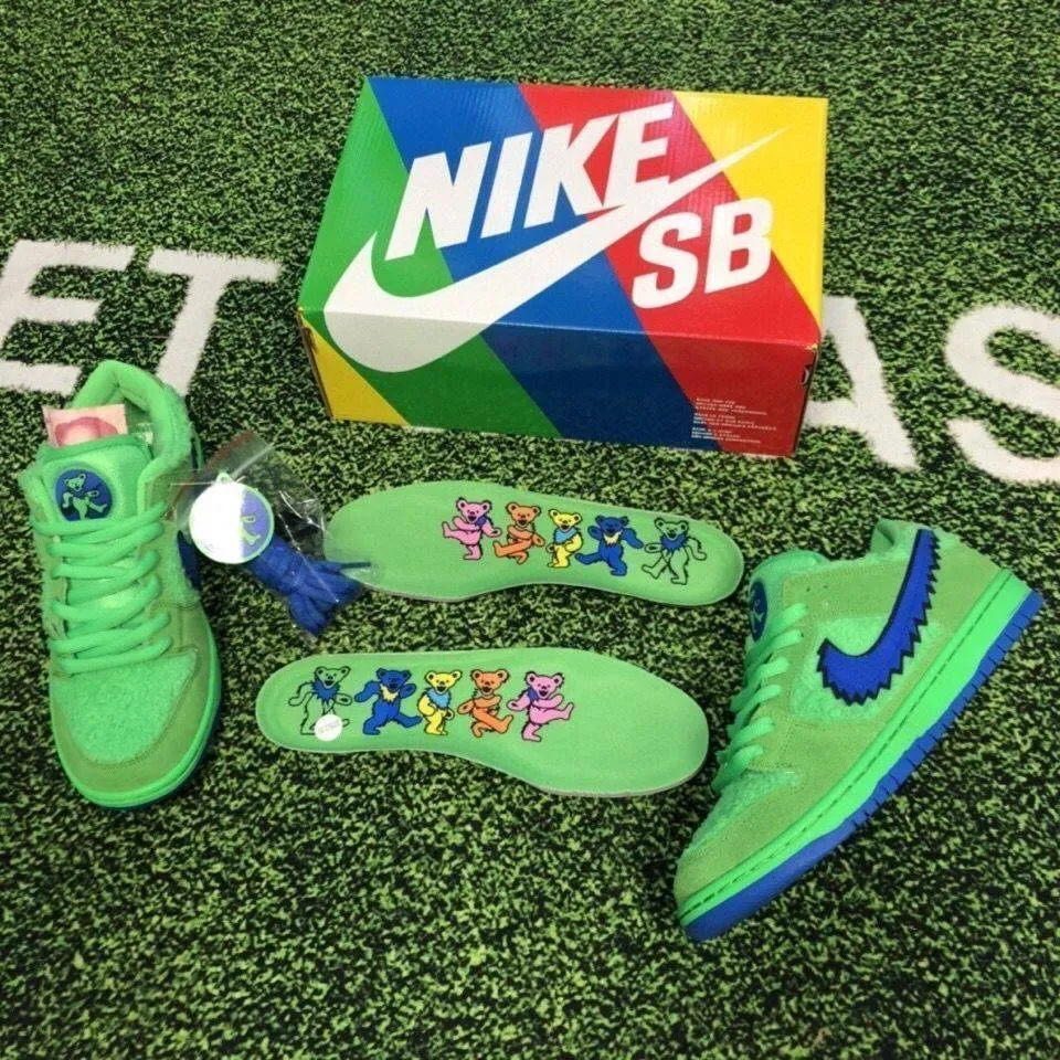 ダンクSBはアメリカのサイケデリックロックバンドGratefulに敬意を表するDeadは1973年のアルバム「Historyoftheグレイトフルデッド、第1巻(ベアーズチョイス)」踊る熊の要素が靴のデザインに注入されています