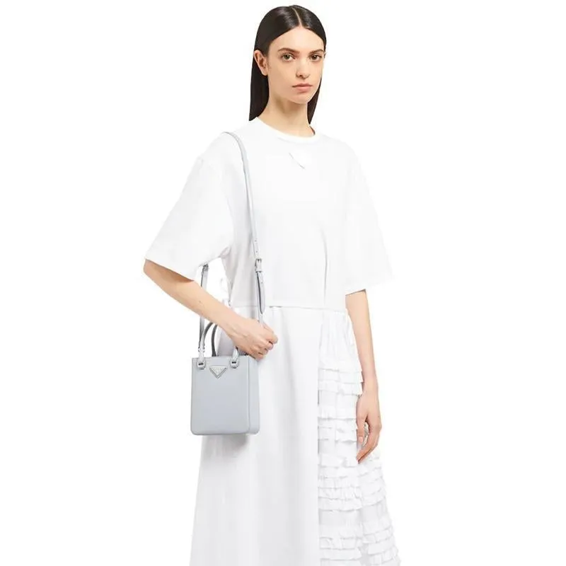 PRADA(プラダ) スモール ブラッシュドレザー トートバッグ ブルー