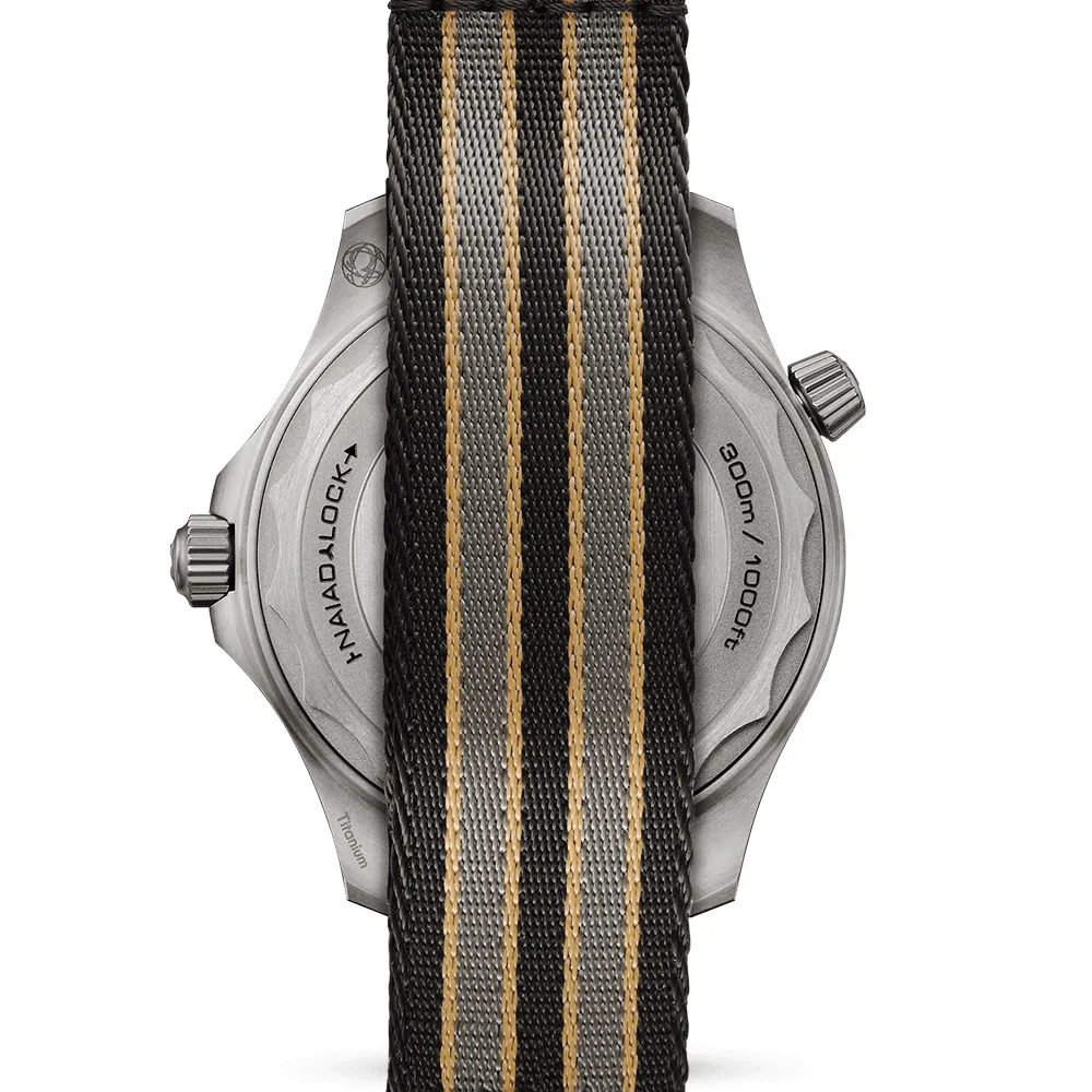 Its 42mm titanium case is lightweight on the wrist and topped with a unidirectional rotating bezel in a tropical brown ceramic to match its brown dial. The display is also protected from scratches. dents. dust. moisture. heat and light damage thanks to a domed sapphire crystal glass front that also gives the case a slimmer profile. The Omega Seamaster Diver 300M 007 NATO Edition watch Features Super-LumiNova coated hour markers and hands for assisted guidance to precision timekeeping in dark conditions.